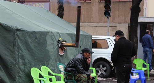 Сторонники оппозиции остались сегодня на ночь в палаточном городке у здания парламента, однако число участников акции из-за дождливой погоды заметно уменьшилось, передал корреспондент "Кавказского узла".