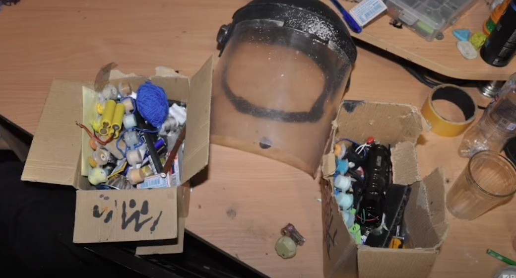 На фотографиях, сделанных в ходе обыска, представлены изъятые взрывчатые вещества, материалы для их изготовления. Молодой человек, лицо которого скрыто, показывает на фотографиях на газовую плиту в кухне, а также достает что-то из пакетов. Взрывчатые вещества выложены на компьютерном столе.