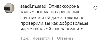""Эпиваккорона" только вышла по сравнению со "Спутник V". Ее даже толком не проверили. Вы как добровольцы идете на такой шаг, запомните", - предупредила saadi.m.saadi.