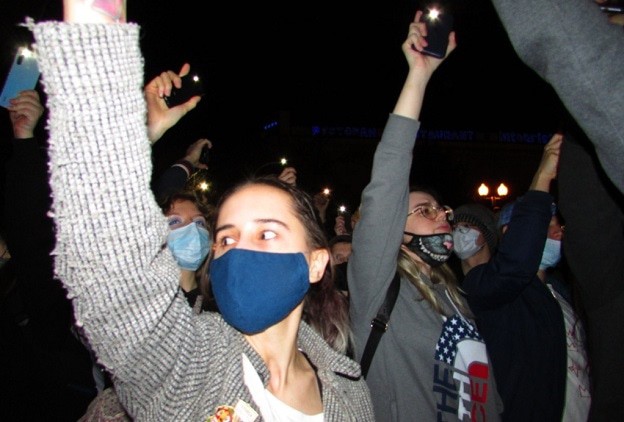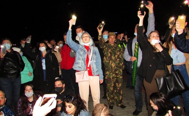 Один из активистов в центре площадки вопрошал собравшихся, хотят ли они и «дальше жить в рабстве». Все хором отвечали ему: «Нет!». Он предлагал им не платить налоги и не работать на государство, которое «отняло у людей свободу». Затем семеро протестующих провели сидячую забастовку. Окружившие их участники митинга размахивали фонариками. Один из них развернул плакат «Свободу Навальному». По краю толпы активисты, взявшись за руки, водили хоровод.