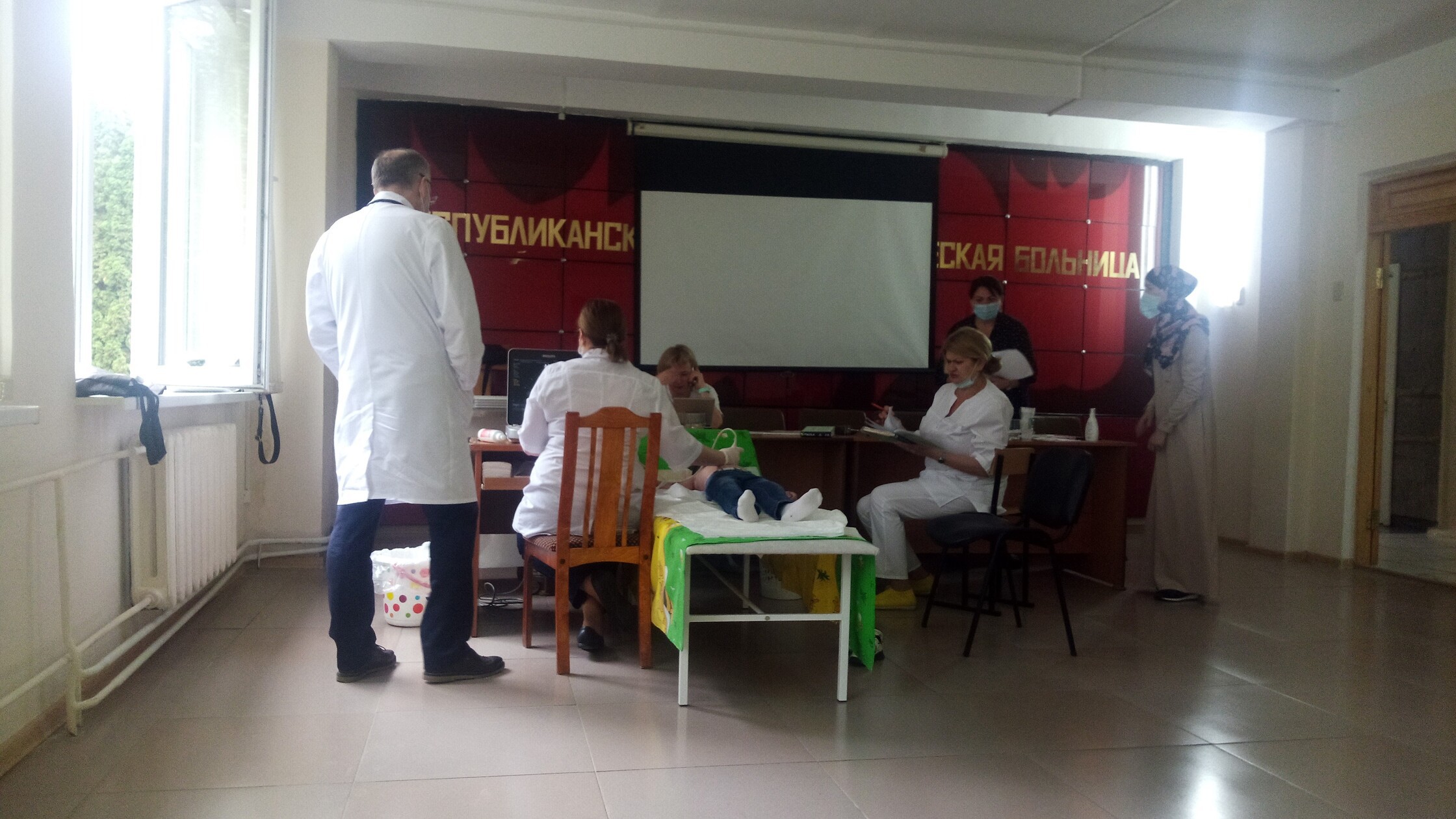 С 3 июня московские врачи осмотрели более 200 детей. Сегодня, в заключительный день работы, бригада из Центра имени Бакулева вела прием в Республиканской детской клинической больнице. В составе бригады были кардиолог Арина Василевская, врач УЗИ-диагност Елена Холманская. В холле ожидали очереди около 20 детей. Некоторым родителям было рекомендовано срочно собирать документы на детей и ехать с ними в Центр имени Бакулева на операцию.