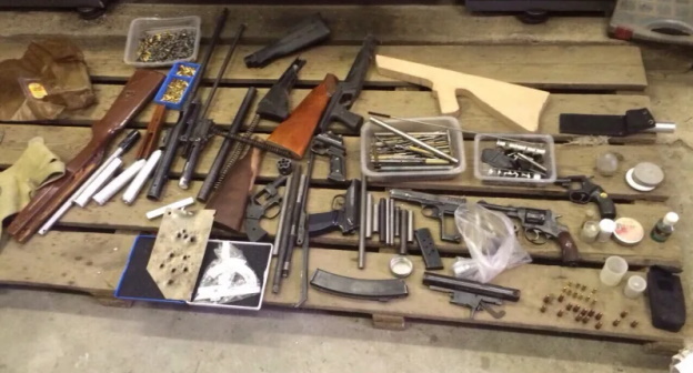 У подозреваемого были изъяты два пистолета Макарова, один пистолет Стечкина и другой образец оружия, а также боеприпасы к ним и магазины от автоматического оружия, уточнило агентство.