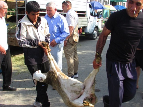 На площадке у въезда на улицу Поворинскую были припаркованы грузовые автомобили. В них блеяли жертвенные бараны. Покупатели тут же заказывали животных. Баранов взвешивали на весах и со связанными ногами укладывали за машинами в тени вишен. У входа в мечеть растянулись столики торговцев.