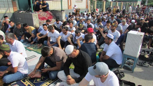 Мусульмане заполнили помещения мечети на двух этажах. Молящиеся разместились на ковриках во дворе мечети и на улице, прилегающей к ее входу. Женщины и малолетние дети расположились отдельно от мужчин в тени деревьев. Молитва началась в 8.00 мск и продлилась полчаса. Слова муфтия доносились из громкоговорителя, установленного на фасаде мечети. После молитвы часть мусульман осталась в мечети, чтобы прослушать проповедь муфтия. Остальные обступили столики торговцев. После проповеди муфтий Волгоградской области при Центральном духовном управлении мусульман России Ильяс Биктимиров проводил индивидуальные беседы с верующими.