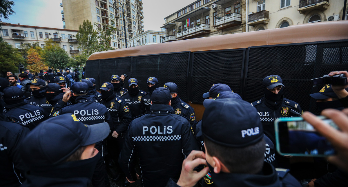 Напомним, полицейские задержали 15 ноября не менее 35 участников акции протеста перед посольством Ирана в Баку, которую планировала провести оппозиционная партия "Мусават". 11-12 ноября шесть членов партии "Мусават" были задержаны на фоне отказа мэрии согласовать в Баку акцию против подавления протестов в Иране. Задержанных предостерегли от участия в анонсированной акции и отпустили. Спустя около двух часов все задержанные были отпущены на свободу, сообщили в партии.