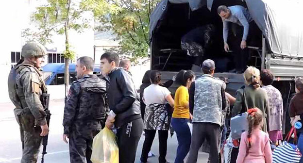 Как писал "Кавказский узел", эвакуированные жители сел Нагорного Карабаха собрались рядом с базой российских миротворцев. Многие из них не получили ни еды, ни питья. При этом в Степанакерт продолжают прибывать жители сел в надежде эвакуироваться.