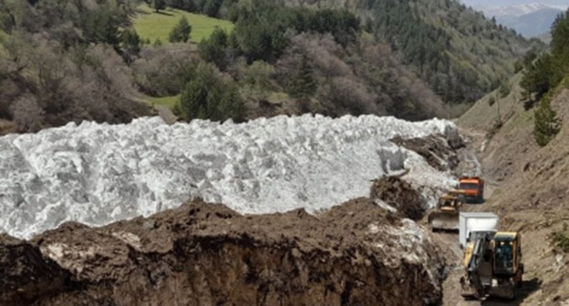 По данным местных жителей, лавина такого большого объема сошла впервые за все время существования этой автодороги, подчеркивается в публикации. "Снежные массы, ориентировочным объёмом более 1 миллиона кубометров, сошли с противоположного склона, затем заполнив полностью русло речки расползлись по полке дороги. Проезжая часть была перекрыта на протяжении 450 метров. Высота лавинной массы, под которой проходит полка дороги, составляла в среднем 20 метров", - объяснило ведомство.