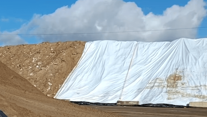 Мазут с песком, который хранится на полигоне в хуторе Воскресенский, накрывают брезентом, чтобы избежать испарений при повышении температуры. Также оперштаб Краснодарского края объяснил применение этой меры защитой песка от влаги.