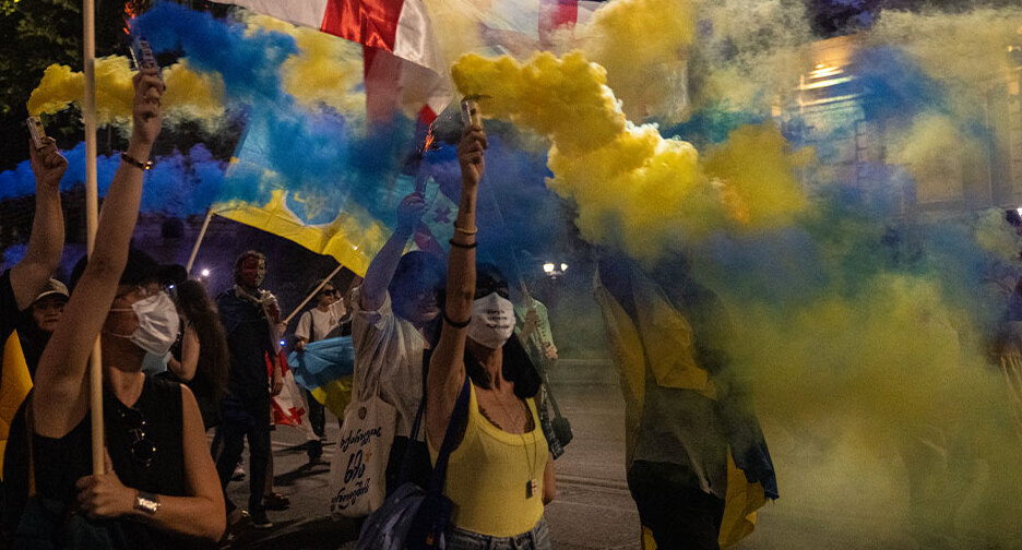 "Грузинский и украинский народы борются за свободу, независимость, европейское и защищенное будущее, за спасение своей национальной идентичности. Солидарность с борцами за свободу и справедливость! Победы Украине!" - цитирует призыв организаторов марша "Грузия Онлайн".