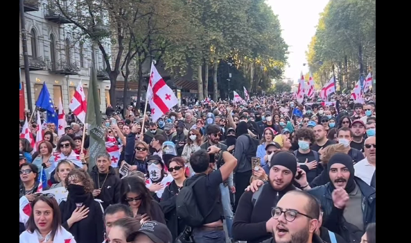Проспект Руставели заблокирован 311-й день подряд, колонна, стартовавшая от Тбилисского госуниверситета пришла к зданию парламента. По пути участники акции сделали остановку у предвыборного штаба мэра Тбилиси Кахи Каладзе, который третий раз баллотируется на пост от "Грузинской мечты", передает Tbilisi Life.