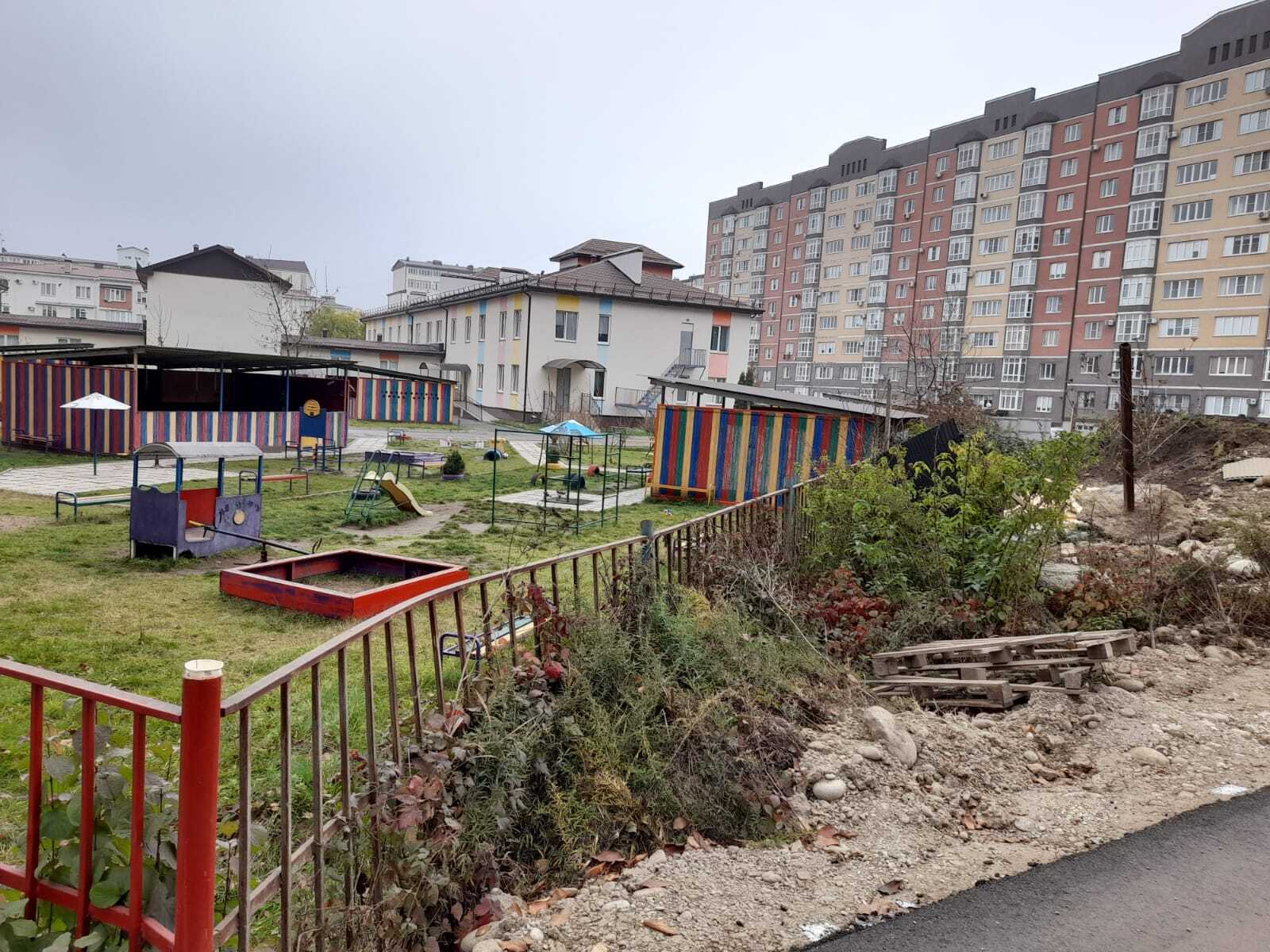 Об изменении плана застройки власти проинформировали жителей микрорайона уже после начала строительства. По данным чиновников, когда местная администрация образовала в проекте земельный участок под новый детсад, территория в семь гектаров, в прошлом принадлежавшая Северо-Кавказскому НИИ горного и предгорного садоводства, уже была продана через аукцион и оформлена покупателем в собственность. Впоследствии «земельный участок неоднократно переходил в результате купли-продажи из рук в руки», указано в письме администрации по этому поводу.