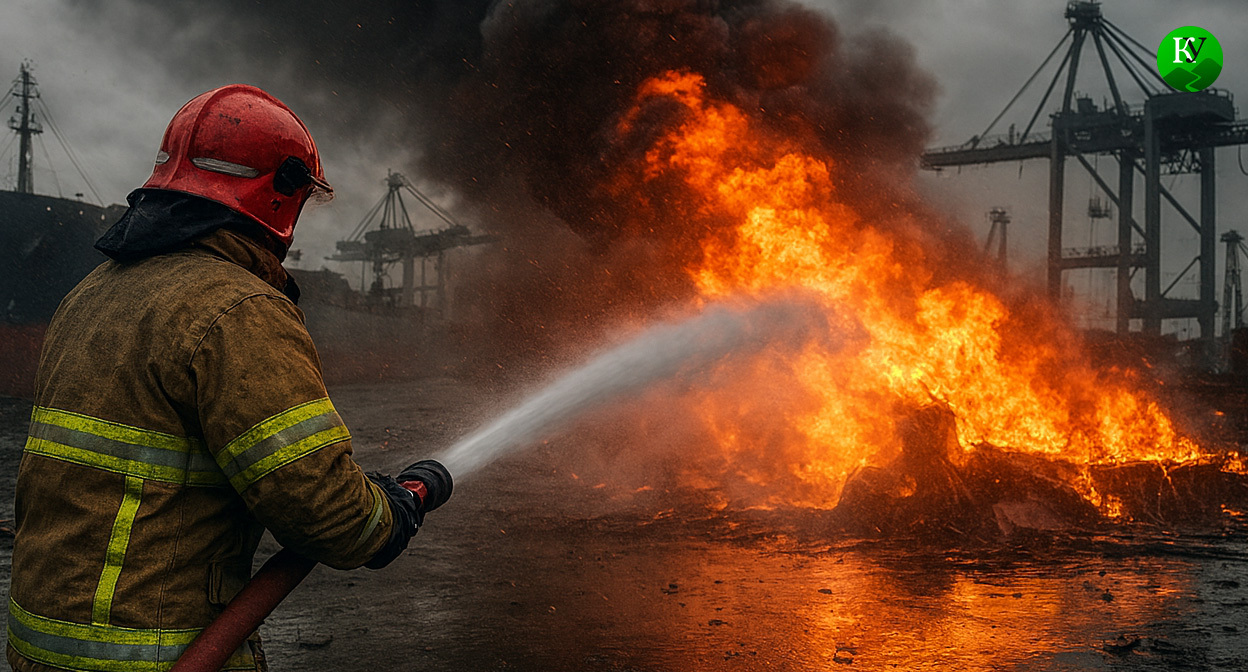 Оперштаб отчитался о тушении пожара в порту Темрюк