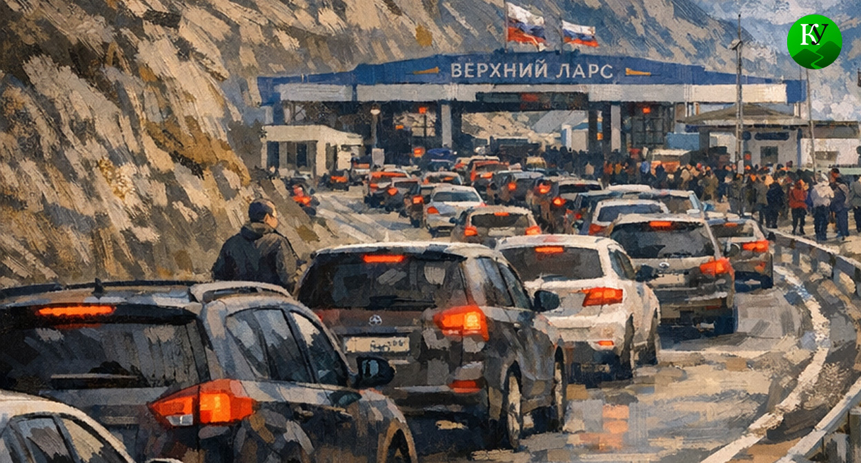Очередь из машин выстроились к КПП "Верхний Ларс"