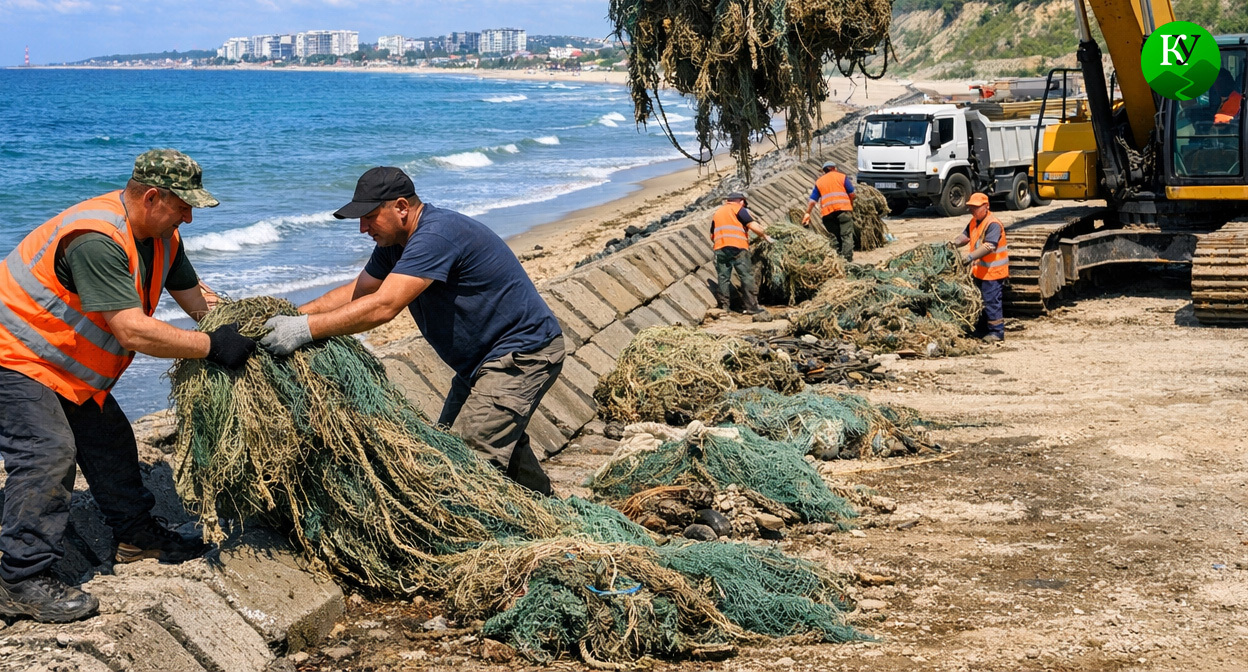 Власти отчитались об уборке сетей с защитного вала на побережье Анапы