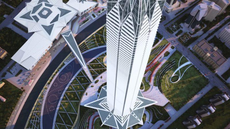 Зубайраев подтвердил, что высота здания составит 435 метров. Небоскреб, по его словам, будет иметь 103 надземных и один подземный этаж (в 2016 году планировались 108 этажей, - прим. "Кавказского узла"), подземный паркинг на 1200 автомобилей, офисные помещения, гостиничные номера, 325 резиденций и четыре пентхауса.
