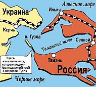 Напомним, что в конце сентября 2003 года Россия в одностороннем порядке начала строительство дамбы от российского Таманского полуострова к украинскому острову Коса Тузла в Керченском проливе, объясняя свои действия необходимостью восстановления экобаланса в Краснодарском крае. Украина квалифицировала действия России как недружественный акт и выразила опасения по поводу возможного нарушения своей территориальной целостности. Россия заявила о спорности статуса Тузлы, однако не смогла предоставить документы, подтверждающие принадлежность острова к российской территории.