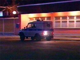 В дежурной части УВД Махачкалы сообщили, что первый взрыв произошел около 0:15 по московскому времени среды на автодороге Махачкала-аэропорт, когда там проезжал автомобиль УАЗ, в котором находились сотрудники первого полка патрульно-постовой службы милиции.