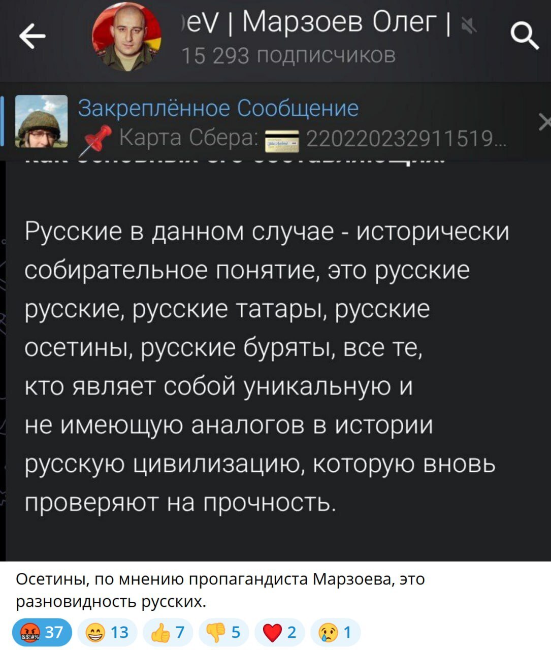 2. Уверен, по Кавказу сейчас могли бы пройтись еврейские погромы... - ТГ-канал Sid[æ]mon (Осетия):