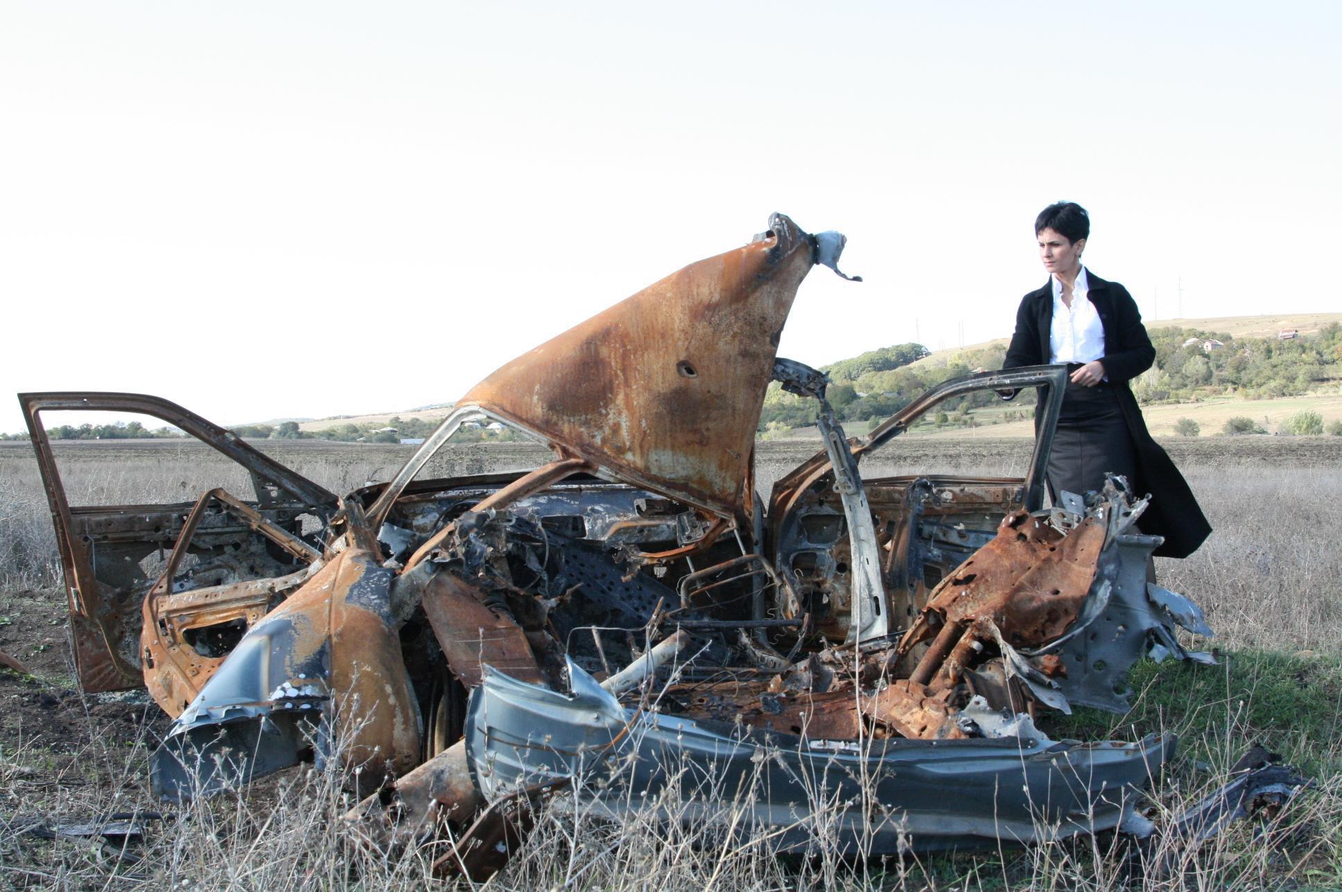 главврач цхинвальской санэпидемстанции Марина Кочиева возле машины, на которой пыталась бежать из Цхинвала