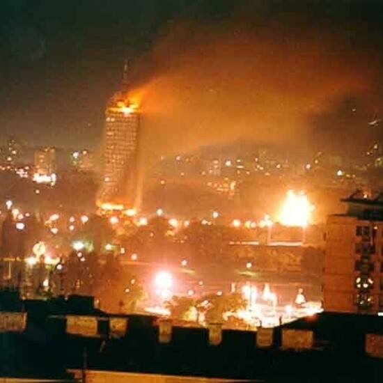 Фото: EAST NEWS. Апрель 1999 года. Белград горит после бомбардировки силами НАТО.
