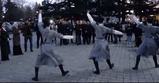 Встретили гостей из Грозного на высшем уровне – танцам и плясками с традиционной чашей Уацамонга. Ну а как же иначе, ведь этот визит и все что делалось в его рамках, было личное поручение Главы ЧР Рамзана Кадырова. Естественно в это поручение входила передача нашей Республики 10 автомобилей УАЗ "Патриот", финансовой помощь для закупки необходимого оснащения для военнослужащих республики и строительства одного из социальных объектов Южной Осетии. Что это будет за объект, пока не решение не приняли, но Ахмедом Дудаевым было сказано что скорее всего детский сад или нечто подобное.