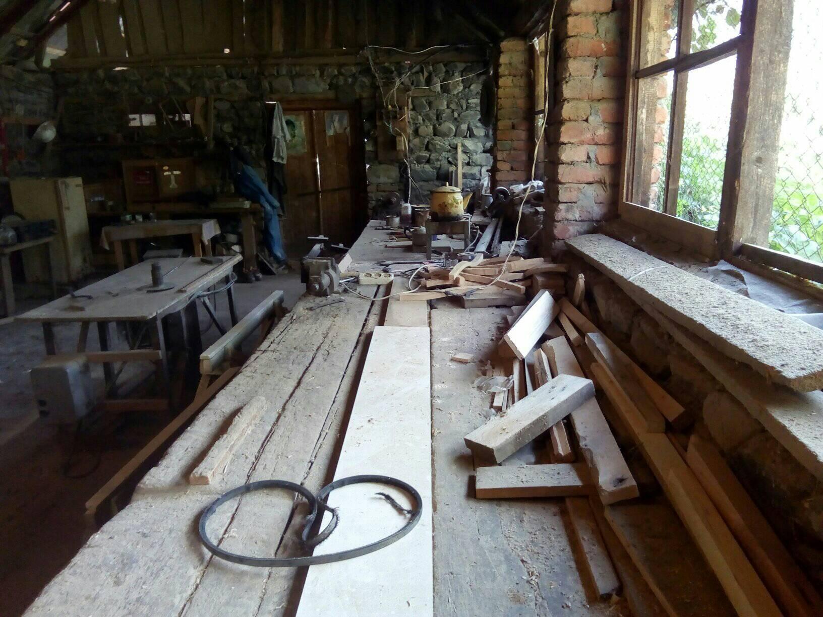 На длинных плотницких  столах можно найти любой инструмент, действующий не от электричества, а мускульной силы человека. А если покопаться в завалах мастера, которые "на черный день", можно найти антикварные предметы, украшавшие столы Илисуинских султанов. Хорошо, что сюда не приходят, просто не знают это место, бакинские старьевщики.