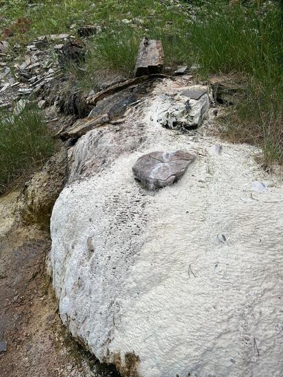 Храм построен из травертина - осадочного туфа. Неподалеку есть источник с минеральной водой - источник Хасиевых. Тут можно увидеть как образуется травертин - соли наслаиваются, отвердевают и утрамбовывается вместе с естественными материалами - палочками, листиками и т.д., образую уникальную текстуру.