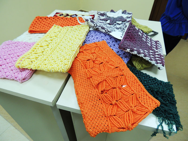 Учительница макраме и бисероплетения Инга Акопян показывает работу своих учеников. Сделано из опилок, клея, воды и муки.