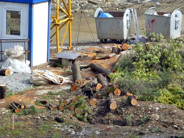 На придомовой территории дома 47 по улице Чайковского в Сочи вырублены около 50 деревьев. Сочи, 16 сентября 2013 г. Фоторепортаж корреспондента "Кавказского узла" Светланы Кравченко
