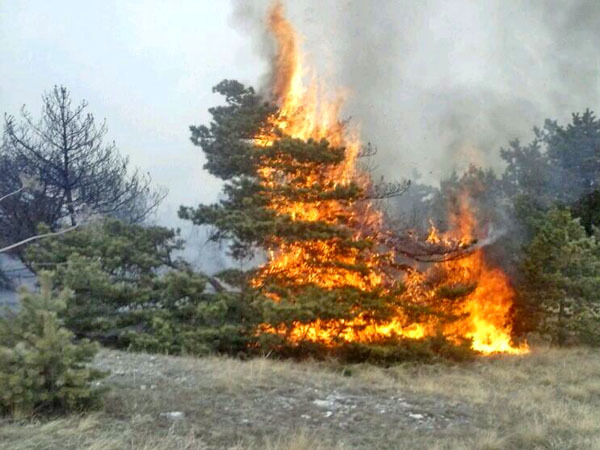 В Гумбетовском районе Дагестана уже неделю продолжает гореть лес. 25 марта 2014 г. Фото предоставлено очевидцем