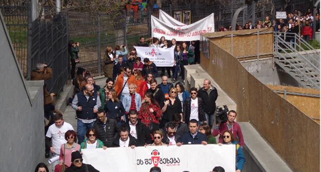 Акция-шествие против распространения записей личной жизни прошла в центре Тбилиси. 19 марта 2016 год. Фоторепортаж Инны Кукуджановой для "Кавказского узла".