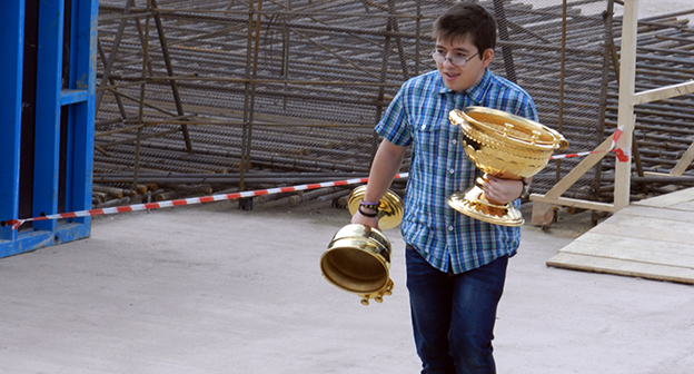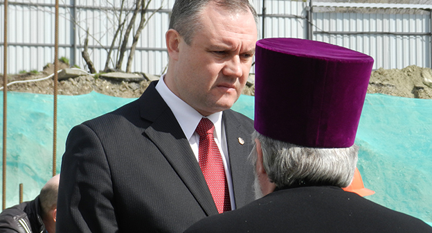 Закладка первого камня в фундамент собора Александра Невского в Волгограде на площади Павших борцов. Волгоград, 5 апреля 2016 года. Фоторепортаж корреспондента "Кавказского узла" Татьяны Филимоновой