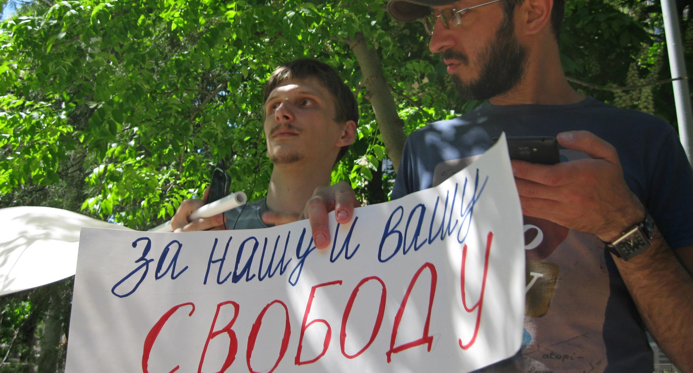 Около тридцати жителей Ростова-на-Дону 6 мая 2017 года вышли на акцию, посвященную пятилетней годовщине событий 6 мая на Болотной площади, когда разрешенная властями акция оппозиции переросла в столкновения с полицией. Охрану общественного порядка и безопасности обеспечивали полтора десятка сотрудников полиции. Мероприятие состоялось в городском парке Строителей около мемориала жертвам политических репрессий. Участники пикета вышли на митинг с российскими флагами и флагами партии «Гражданская инициатива», также в руках у них были фотографии политзаключённых, в частности Дарьи Полюдовой, Олега Навального, ростовского журналиста Александра Толмачёва. Единственным инцидентом стало задержание известного блогера и репортёра Сергея Рулёва, который обозвал и толкнул одну из участниц. Собравшиеся потребовали освободить всех политических заключённых, а также прекращения «Болотного дела». Организаторы сообщили корреспонденту “Кавказского узла”, что изначально они планировали провести акцию на площади перед парком имени Горького, однако её перенесли в безлюдный парк Строителей. Фото Константина Волгина для “Кавказского узла”