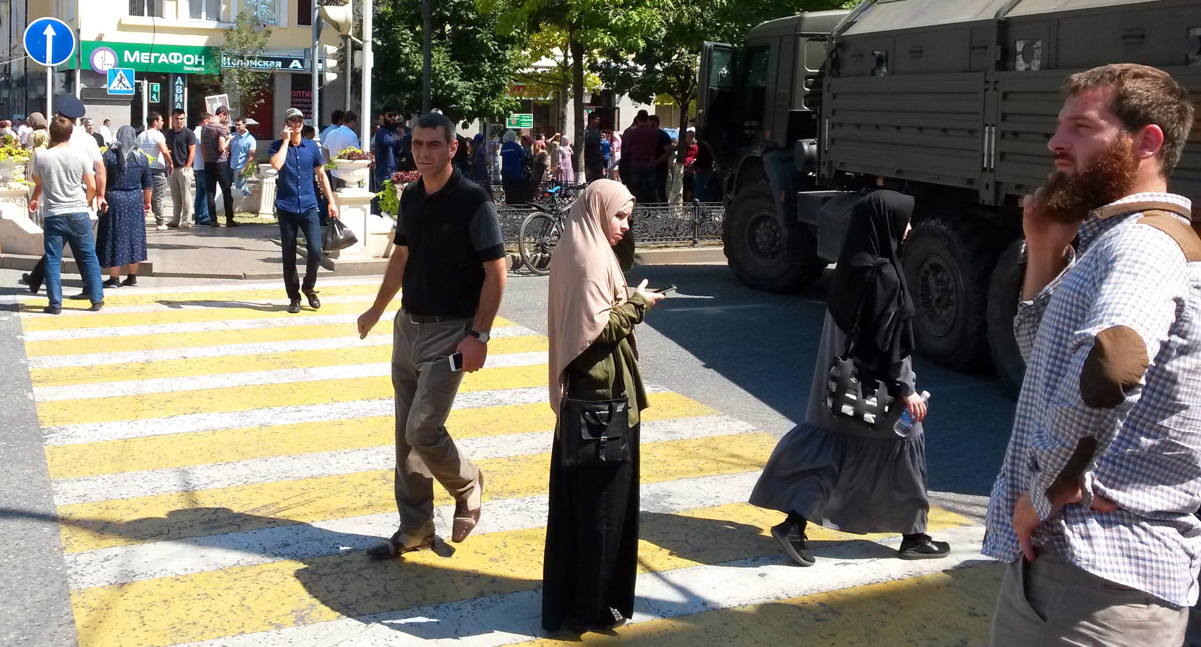 Кровавые столкновения в Мьянме и притеснения мусульман в этой стране вызвали острую реакцию в Чечне. Рамзан Кадыров настроен пойти против позиции Кремля, если она не совпадет с его убеждениями. Утром 4 сентября в поддержку мусульман Мьянмы в Грозном начался многотысячный митинг, который контрастирует с массовой реакцией на преследования “нетрадиционных” мусульман в республике. Некоторые участники, правда, ушли с митинга через 15-20 минут после его начала. На улицах, прилегающих к центральной площади имени Кадырова, толпятся группы участников акции. Снимки сделаны на улице Лорсанова в центре Грозного. Фоторепортаж корреспондента “Кавказского узла”.