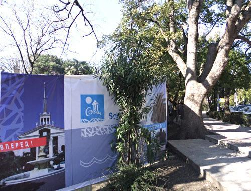 Строительные заборы на Приморской набережной в парковой зоне возле Зимнего театра и гостиницы «Приморская». Сочи, 21 марта 2012 г. Фотокорреспондент «Кавказского узла» Светлана Кравченко