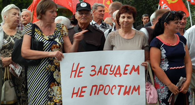 Митинг с требованием погашения задолженности по зарплате работникам завода ВЗБТ 08.09.2016. Фоторепортаж корреспонджента "Кавказского узла" Татьяны Филимоновой
